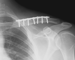 The scapula or shoulder blade is a flat bone and very difficult to break. The mechanism is usually a direct blow. Any scapula fracture needs to be evaluated for related injuries.